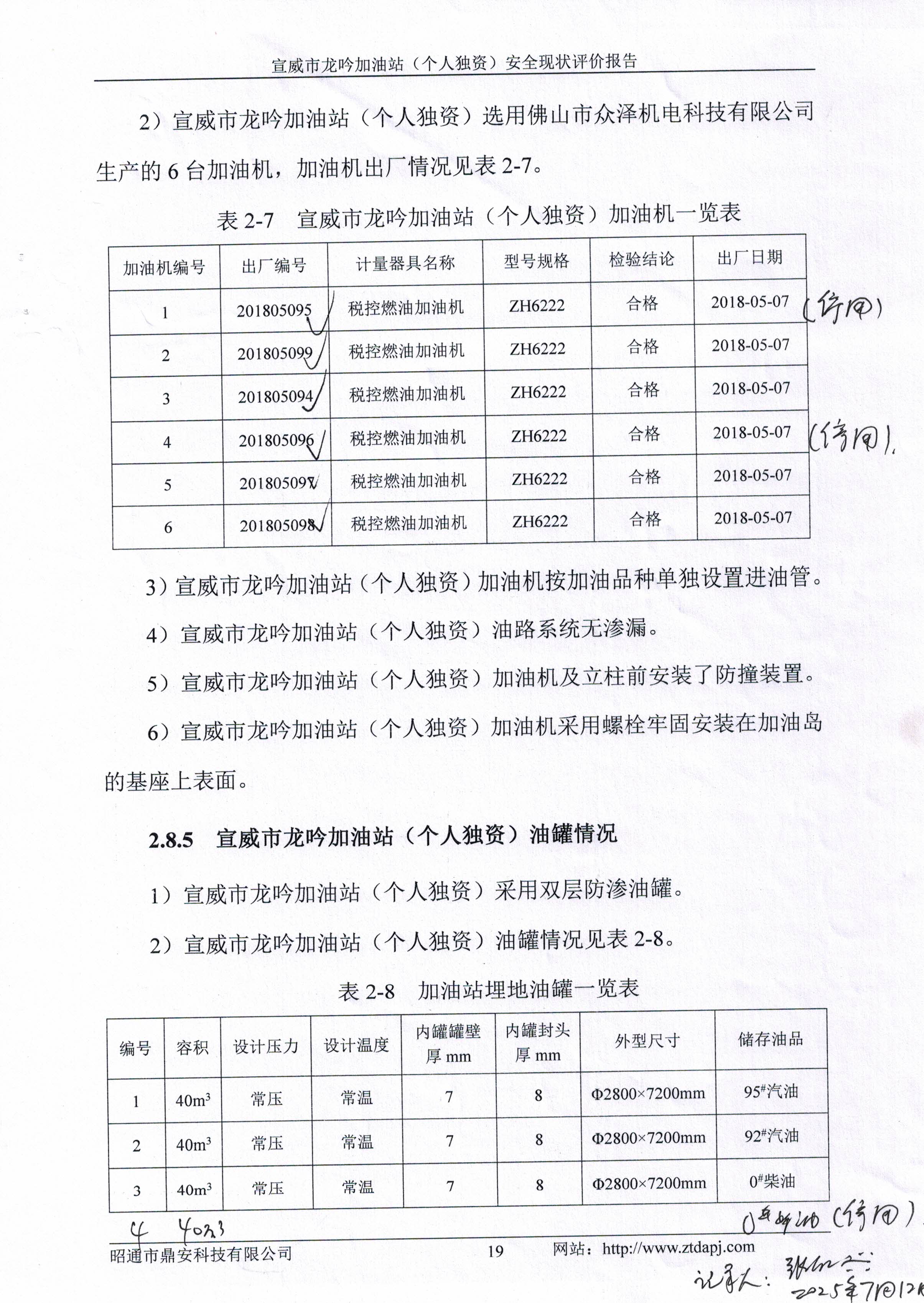 項(xiàng)目名稱 | 宣威市龍吟加油站(個(gè)人獨(dú)資)安全現(xiàn)狀評價(jià)報(bào)告 | 合同編號 | DAAPQJ2025-9 | |||||